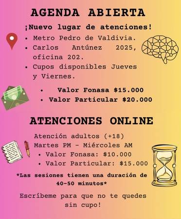 Holaa, mi nombre es Antonia y soy Psicóloga Clínica. Tengo experiencia en todas las edades, desde los 3 años hasta adulto mayor. Me especializo en evaluación y psicoterapia de Autismo, mayoritariamente en infancia y adolescencia. *Las sesiones varían entre 40 a 50 minutos.