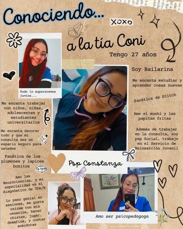 Psicopedagoga Clínica ✨️🎀 📙 Diplomada en Neuropsicología 📙 Diplomada en Evaluación e Intervención de las Funciones Ejecutivas 📙 Diplomada en Condiciones del Neurodesarrollo para la Inclusión Socioeducativa ➡️ Ofrezco servicios de: ▪️Evaluación Psicopedagógica. ▪️Evaluación e Intervención de habilidades cognitivas y Ejecutivas. ▪️Intervención en Condiciones del Neurodesarrollo. ▪️Refuerzo en habilidades de lectura, escritura y cálculo. ▪️Orientación vocacional y acompañamiento PAES. ▪️Ansiedad escolar y motivación. ▪️Acompañamiento a estudiantes universitarios. ▪️Técnicas y herramientas de estudio. 📚 Especialista en TDA/H. 📌 Atiendo a niños, niñas, adolescentes y estudiantes universitarios. Este será tu lugar seguro 💖✨️