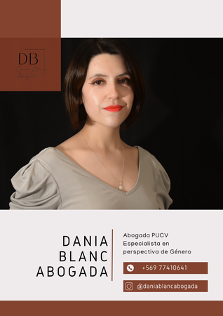 Bienvenida! Soy Dania Nicolle Blanc Reyes, apasionada del campo del Derecho de Familia y Penal con perspectiva de Género y con un profundo compromiso en proteger y promover los derechos de las mujeres e infancias. Mi enfoque se centra en identificar y derribar los estereotipos de Género que están operando en tu caso, ofreciendo una solución jurídica que se adapte a lo que necesitas. Lo que me distingue es mi capacidad para aplicar el Derecho como una herramienta al servicio de mis valores, como lo son promover la Equidad de Género en las relaciones de Familia, la integridad y la autenticidad. Soy feminista y ser mujer es mi declaración política, pues he experimentado en mi vida y en mi cuerpo distintas formas de violencia machista y patriarcal, he vivido las consecuencias de la socialización como mujer y es desde ahí que decido ayudar a otras, porque las entiendo, porque a mi también me pasó. Con mi experiencia en la tramitación de causas penales en materia de violencia de género, medidas de protección en favor de niños, niñas y adolescentes, procedimientos por pensiones de alimentos, violencia intrafamiliar, un Diplomado en Feminismo y Crítica Cultural de la PUC, múltiples cursos en comprensión de la violencia contra la Mujer y acciones de voluntariado en la temática, te ofrezco llevar tu voz y defenderla ante las instituciones que toman las decisiones. Te invito a agendar una asesoría personalizada conmigo, para que juntas planifiquemos la estrategia más adecuada para abordar tu caso jurídico.