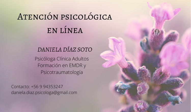 Hola, soy Daniela, soy psicóloga clínica especializada en trauma complejo, terapia EMDR y acompañamiento psicológico online para personas adultas. Acompaño procesos de personas que han vivido experiencias adversas, abuso, pérdidas o situaciones difíciles que siguen impactando su vida emocional, sus relaciones o la forma en que se miran a sí mismas. Trabajo desde un enfoque respetuoso del ritmo personal, priorizando la seguridad emocional, la estabilización y el fortalecimiento de recursos internos antes de avanzar hacia procesos más profundos. Para solicitar hora me puedes mandar un mensaje al correo: daniela.diaz.psicologa@gmail.com o al WhatsApp +56994353247 SOLO ATENCIÓN ONLINE personas adultas (+20 años).