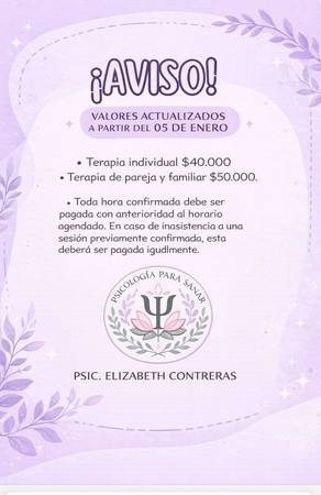 Hola, mi nombre es Elizabeth Contreras Aguilar, Psicóloga clínica, con 14 años de experiencia. Realizo procesos de psicoterapia desde un enfoque sistémico, comprendiendo a la persona dentro de sus vínculos, su historia y los contextos que influyen en su bienestar emocional. Buscando potenciar las fortalezas propias de cada uno y conducir así hacia una mejora integral tanto a nival psicológico como emocional. Realizo psicoterapia individual desde los 7 años, pre adolescentes, adolescentes, terapia de pareja y terapia familiar, utilizando el modelo de terapia multisistémica de MST Institute, además de los conocimientos adquiridos en el Magister de Psicología clínica con mención en psicoterapia sistémica familiar. Me especializo en el abordaje de adicciones, ansiedad, depresión, trastornos de la conducta alimentaria, abuso sexual, trauma complejo y violencia intrafamiliar. Ofrezco un espacio terapéutico seguro, respetuoso y confidencial, orientado a la contención emocional, la comprensión profunda de las dificultades y la construcción de recursos para el cambio. Hoy atiendo de forma presencial en Copiapó y online al resto del país. Si sientes que esta forma de trabajo basada en evidencia y mi experiencia acompañando procesos de cambio para lograr sanar, es útil para ti, estoy aquí para acompañarte. Ansiedad Depresión Duelo Trastornos de la conducta alimentaria Trastornos del estado del ánimo Autoestima