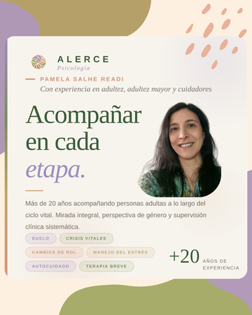 Soy psicóloga con más de 20 años de experiencia acompañando a personas y familias en distintos momentos de sus vidas. Trabajo desde el enfoque de la terapia breve centrada en soluciones, con formación en salud pública y familiar, promoviendo el bienestar en todas sus dimensiones: física, mental, social y espiritual. Atiendo personas adultas a lo largo de todo el ciclo vital, con especial foco en la adultez mayor y cuidadores. Acompaño procesos de duelo, crisis vitales, manejo del estrés, desgaste asociado al cuidado, desde una mirada integral, con perspectiva de género y enfoques basados en evidencia. Mi práctica se desarrolla en la supervisión clínica sistemática, lo que me permite ofrecer un acompañamiento reflexivo, actualizado y de calidad. Todo esto en un espacio cercano, respetuoso y confidencial. Mi objetivo es ayudarte a encontrar recursos, sentido y bienestar a tu vida.