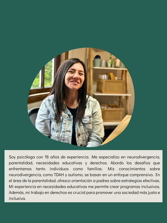 Con una sólida formación en evaluaciones neuropsicológicas y certificaciones en WISC-V, ADOS-2 y ADI-R, ofrezco servicios especializados para niños, adolescentes y adultos. Mi enfoque en el modelo PEERS mejora las habilidades sociales y el aprendizaje inclusivo mediante el Diseño Universal de Aprendizaje. Experta en trabajar con familias y en enfoques de género para situaciones de violencia intrafamiliar, facilito grupos terapéuticos que promueven un entorno de crecimiento y recuperación.