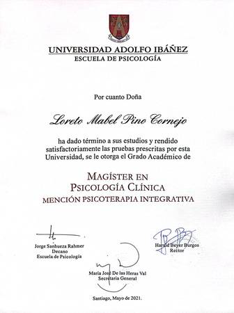 Con más de 12 años de experiencia, Loreto Pino Cornejo es una destacada psicóloga y psicoterapeuta especializada en psicología clínica para adultos. Su enfoque psicoterapéutico integral se fundamenta en un Magíster en Psicoterapia Clínica por la Universidad Adolfo Ibañez y en una especialización en Psicoterapia Integrativa del Instituto de Psicoterapia Integrativa de Chile. Loreto ofrece un abordaje completo y personalizado para tratar diversas afecciones de salud mental. Descubre más sobre su trayectoria profesional en su perfil de LinkedIn." https://www.linkedin.com/in/loreto-pino-cornejo-8110a265?utm_source=share&utm_campaign=share_via&utm_content=profile&utm_medium=ios_app