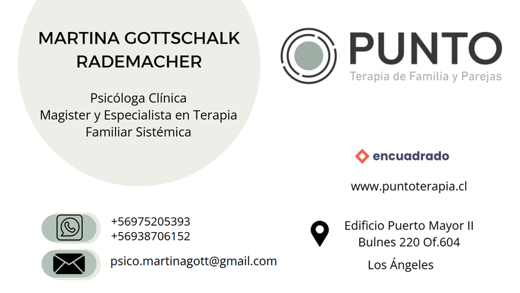 Hola, soy Psicóloga Clínica egresada de la Universidad De La Frontera, con 15 años de experiencia profesional. En el año 2010 inicié mi carrera laboral en la atención pública de salud donde he tenido la oportunidad de trabajar con equipos interdisciplinarios en múltiples y complejas problemáticas de salud mental. Mi orientación hacia la mejora continua y la entrega de una atención de calidad me llevó a especializarme en el ámbito clínico y la investigación. Entre los años 2014 y 2017 curso estudios de postítulo, egresando como Especialista en Terapia Familiar y Magíster en Terapia Familiar Sistémica. Impulsada por mi abordaje en adolescentes y familias, en el período 2016-2017 concreto la formación de Especialista en Educación Sexual Integral. Dentro de mi formación destaca el abordaje en adolescencia, suicidalidad, trauma, trastornos de personalidad, trastornos ansiosos, depresión, abordaje en familias multiproblemáticas. Mi trabajo se ha orientado principalmente en adolescentes, adultos y familias.