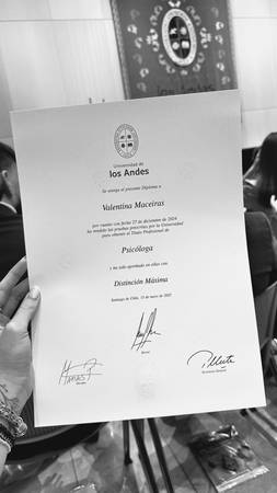 Psicóloga egresada de la Universidad de Los Andes con especialización en Infanto juvenil. Actualmente cursando un Diplomado de Psicopatología del Vínculo en Universidad Católica de Chile