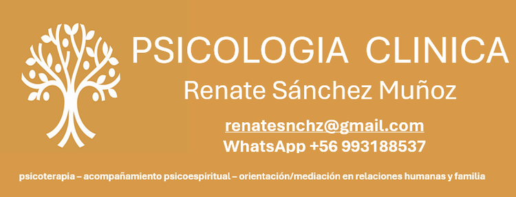 Soy Psicóloga Clínica, de la Universidad Internacional SEK, con décadas de formación y experiencia en orientación y acompañamiento psico-social-espiritual a niños(as), adolescentes, jóvenes y adultos(as) en diversas áreas de las relaciones humanas, la orientación y mediación familiar, la orientación educacional y vocacional, la salud mental y las emociones. Siento una especial motivación por acompañar a personas en situación de pérdidas y duelo, psicooncología o acompañamiento en el cáncer, y a familias con integrante TEA (evaluación ADI-R). Entiendo la psicoterapia como un encuentro entre dos almas que juntas recorren un camino de aprendizaje y sanación, desde el respeto mutuo, la comprensión empática y el no juzgar; junto a la importancia de rescatar el sentido de vida y trascendencia. Atiendo, personas, parejas y grupos (talleres de crecimiento personal), principalmente on line, sin embargo, puedo agendar atención presencial previo acuerdo al correo electrónico. Espero su contacto a: renatesnchzgmail.com