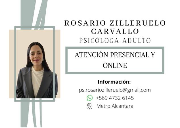 ¡Hola! Soy Rosario, psicóloga dedicada y comprometida con mis consultantes. Quiero comprender profundamente tu propia historia para reconstruir conjuntamente nuevas perspectivas y significados, entendiendo que cada experiencia es única. En este espacio terapéutico no solo encontrarás un lugar seguro y de apoyo, sino también una compañera de equipo dedicada a tu bienestar y desarrollo personal. Utilizando técnicas adaptadas a tu situación única, trabajaremos en conjunto para explorar tus experiencias, reconstruir tus perspectivas y encontrar soluciones que se ajusten a ti. Construiremos un camino hacia una vida más plena y satisfactoria, aprovechando el poder de la terapia constructivista de manera integral y adaptada a tus necesidades individuales. Experiencia en: Ansiedad, Ansiedad generalizada o ansiedad social, Autolesiones, Bipolaridad, Crisis de pánico, Depresión, Diagnóstico de una enfermedad física, entre otros. Temáticas que trabajo: "Ocurrió un cambio radical en mi vida", "Tengo problemas en mis relaciones", "Crisis existencial", "Culpa", "Dependencia emocional", "Duelo", "Aprender a poner límites", "La regulación de mis emociones", "Patrones de apego". *Consultar directamente HORARIO PRESENCIAL