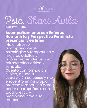 ¡Hola! ofrezco acompañamiento psicológico y terapéutico a mujeres adultas y adolescentes, desde una mirada ética, crítica y sensible desde un Enfoque Humanista y con Perspectiva Feminista. Cuento con formación clínica, acudo a supervisión de casos y me encuentro en mi propio proceso terapéutico para poder acompañarte con toda la ética y profesionalismo que mereces.