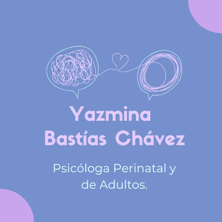 Bienvenid@: Soy Yazmina, Psicóloga clínica - perinatal, Psicoterapeuta Gestalt (U.Mayor y Centro Gestalt Santiago), Especialista en Duelo gestacional, perinatal y gestación arcoíris (Formación Escuela Duelo y Arcoíris, Chile). Certificada en Salud Mental prenatal y perinatal con el doctor Thomas Verny en el Instituto Holístico Materno Perinatal, Chile. Doula de Gestación, parto y posparto, Escuela de Doulas Almatriz, Chile. Formada en Salud Mental Perinatal del Instituto Europeo de Salud Mental Perinatal, España. Diplomada en Género y Políticas Públicas (UBB, Concepción Chile). Diplomada en Ed. Inclusiva y discapacidad (PUC, Stgo de Chile). Miembro de la Red Chilena de Salud Mental Perinatal en la que participo en los grupos de trabajo de: Duelo Perinatal y de Desafíos reproductivos y familias diversas. Constantemente busco especializarme y perfeccionarme en diversas formaciones, culminando cursos tales como: - "Herramientas psicoterapéuticas en Técnicas de reproducción humana" (GestaCrianzaAmorosa, 2022). - "Psiquiatría para psicólogos" (Área Prima, Argentina 2023). - "Sueño Materno-Infantil y Perinatalidad: Herramientas para el acompañamiento hacia las familias con bebés entre 0 a 12 meses" (Adipa, 2023). - "Acompañamiento psicológico en Alergias alimentarias" (Ps. Manuela Susaeta, 2024). Realizo atención psicoterapéutica a adult@s, parejas y ma-padres. Foco en sintomatología ansiosa depresiva y abordaje en temáticas perinatales. Te ofrezco un espacio psicoterapéutico seguro y acogedor en el cual puedas exponer libremente tus inquietudes y necesidades para buscar en conjunto, nuevas opciones y visión en pro de mejorar tu bienestar psicológico. Sesiones on line Si deseas saber algo más, escribe a mi correo: ps.yazmina.bastias.ch@gmail.com o escribe a mi Wapp. Un abrazo.